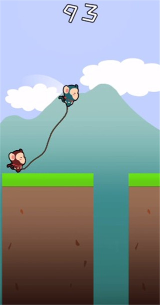 游戲其實就整體結構而言并不復雜,橫版闖關,Q版的畫面,玩法也非常“容易”。我們需要操作兩個被繩子捆在一起的角色,跳躍過懸崖,我們的目的只有一個,不要讓兩人同時掉落落差之下,不斷前進。操作上,我們只要長按屏幕就可以讓人物進行跳躍,根據(jù)持續(xù)按的時間會決定角色跳躍的距離。