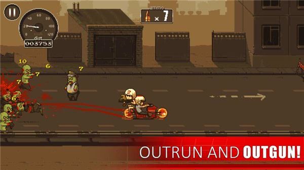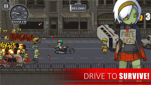 1、駕車逃生在廢棄車輛之間急速轉(zhuǎn)向,開車沖過僵尸群,當(dāng)僵尸逼近,就盡情開槍吧。前往車庫升級你的車和槍炮,保持領(lǐng)先于追逐你的僵尸。