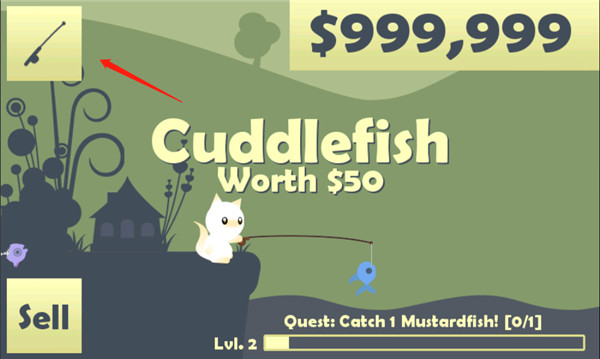 7、當(dāng)?shù)燃?jí)升級(jí)到2級(jí)時(shí),點(diǎn)擊左上角的魚竿圖標(biāo)。
