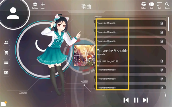4、具有豐富自定義元素的音樂節(jié)奏手機游戲。玩家可以將自己喜歡的本地歌曲導入此手機游戲;