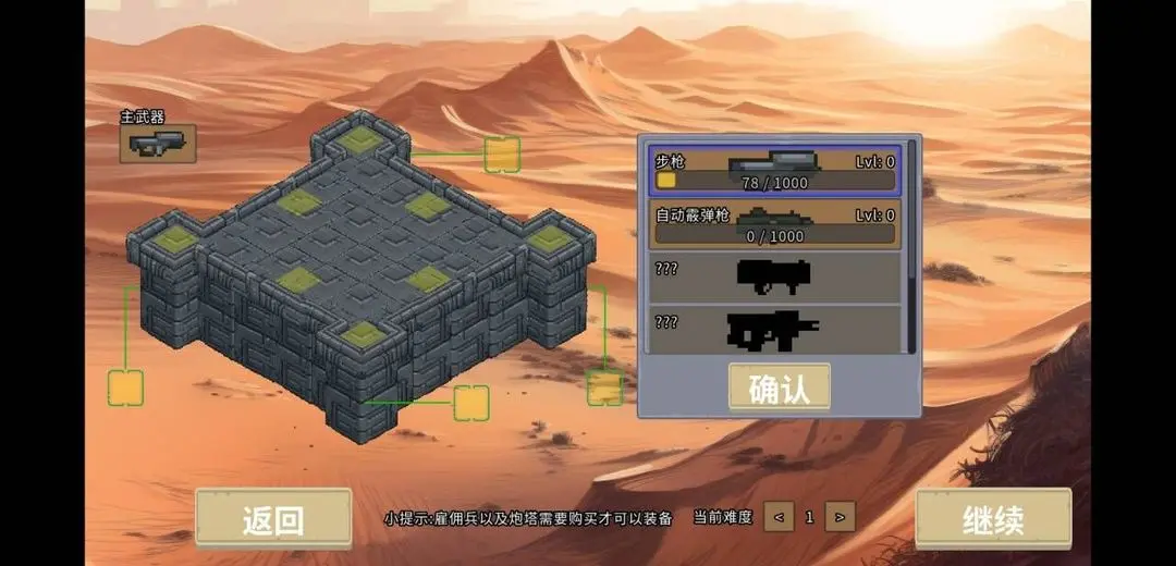 進(jìn)入游戲準(zhǔn)備頁面,如下圖所示,點(diǎn)擊菱形綠色塊,就會(huì)彈出雇傭兵列表頁面