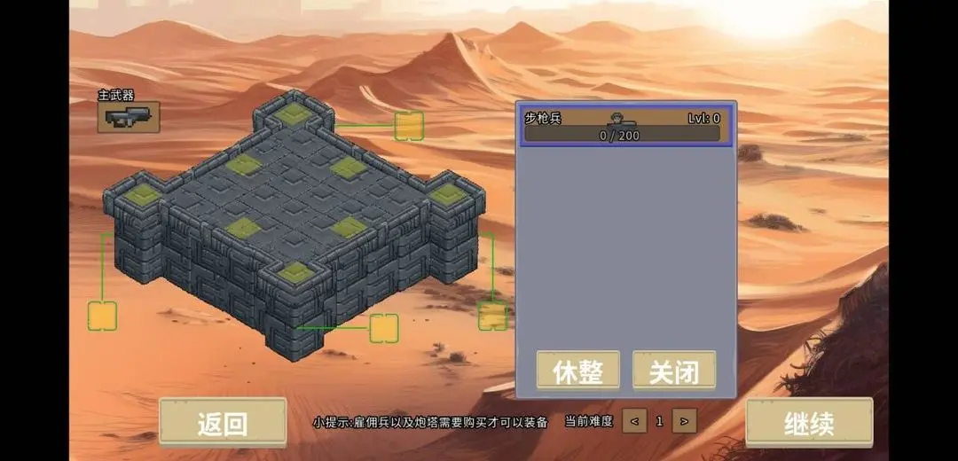 如下圖所示,這時(shí)候可以點(diǎn)擊關(guān)閉窗口,進(jìn)入游戲啦,當(dāng)然如果想切換雇傭兵所在菱形綠色塊位置,可以點(diǎn)擊雇傭兵列表界面的休整按鈕,這時(shí)候雇傭兵就退出部署位置