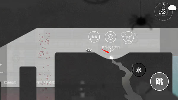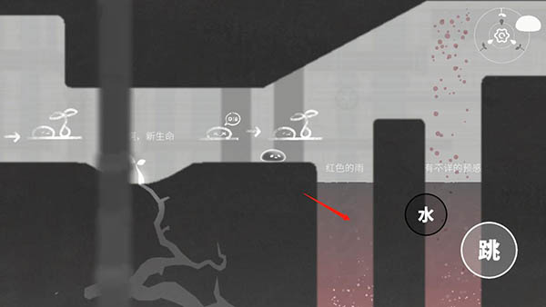 3、點擊跳躍可以幫助水躲避紅色的雨;