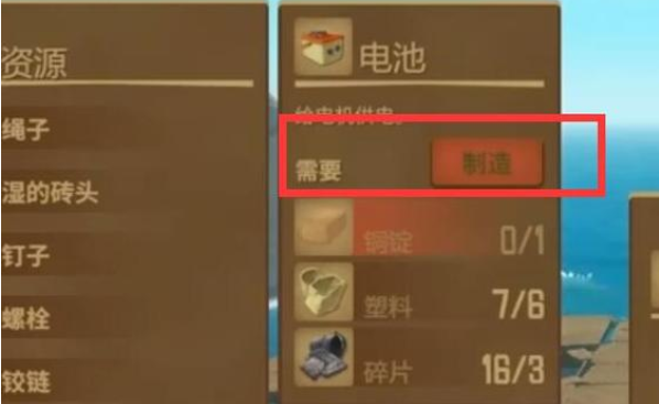 2、需要銅錠1個,塑料6個,碎片3個,收集齊后點擊制造選項即可