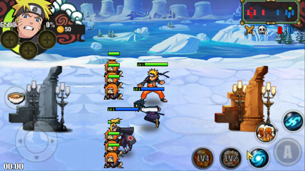 英雄等級(jí)上限6級(jí) 小兵等級(jí)上限3級(jí),英雄的2個(gè)奧義技能分別在2級(jí),4級(jí)時(shí)開(kāi)啟(當(dāng)局戰(zhàn)斗內(nèi))奧義技能釋放需要承受傷害來(lái)獲取 查克拉(簡(jiǎn)稱:怒氣值)戰(zhàn)斗界面中,還有回血技能(回血技能無(wú)藍(lán)消耗,但是會(huì)消耗當(dāng)局戰(zhàn)斗內(nèi)金幣)