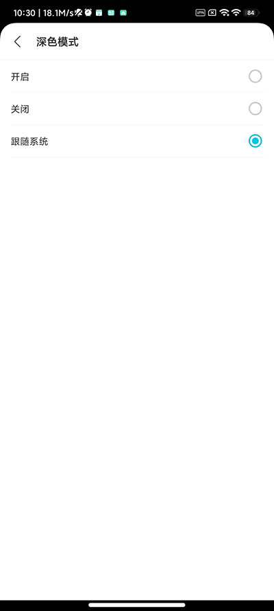 4、在深色模式界面中,點(diǎn)擊“開啟”即可;