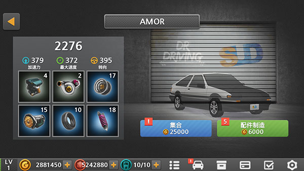 5、然后來到對(duì)應(yīng)的賽車頁面,點(diǎn)擊【配件制造】。
