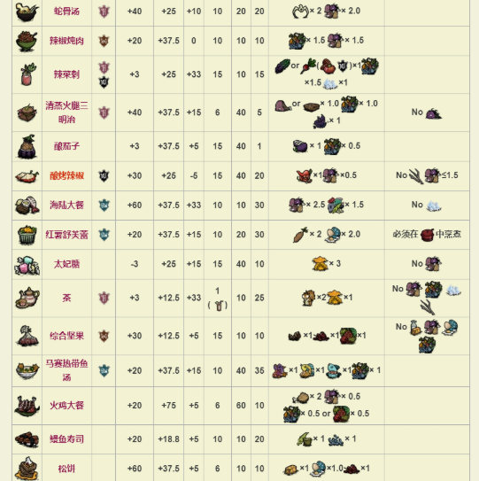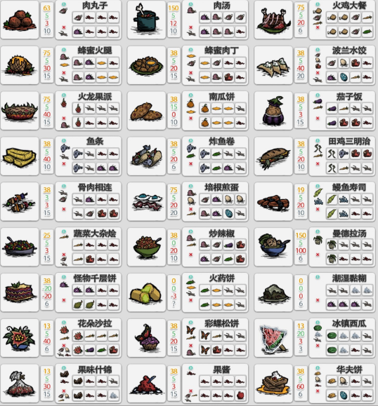 饑荒食譜圖表最新
