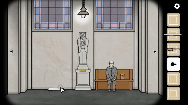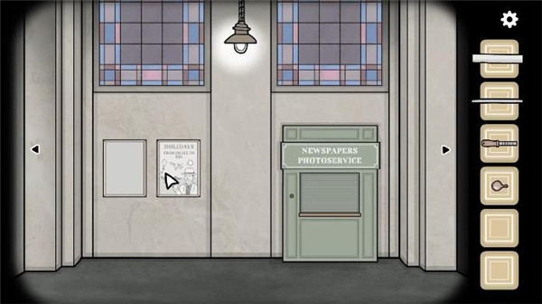 9、去到海報(bào)旁邊的照相館,裝上把手,拉開簾子,獲得報(bào)紙。把報(bào)紙拿給坐在長(zhǎng)椅上的男人,在他看報(bào)紙的時(shí)候點(diǎn)擊他右邊的口袋,獲得硬幣。