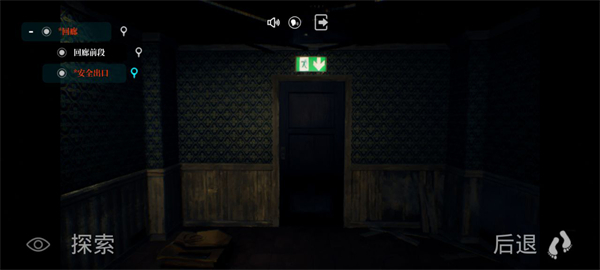 6、來到安全出口這一模式,可以點(diǎn)擊左下角的探索也可以點(diǎn)擊右下角的后退