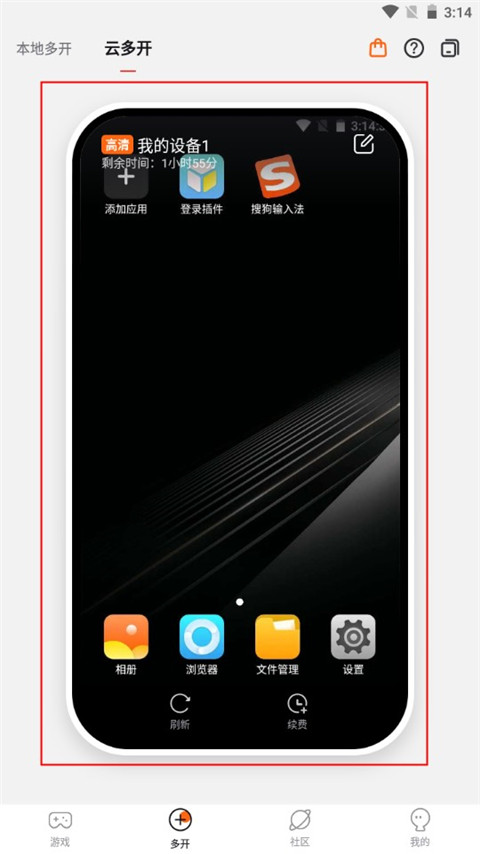 3、點擊中間的云手機進(jìn)入到云手機內(nèi)部