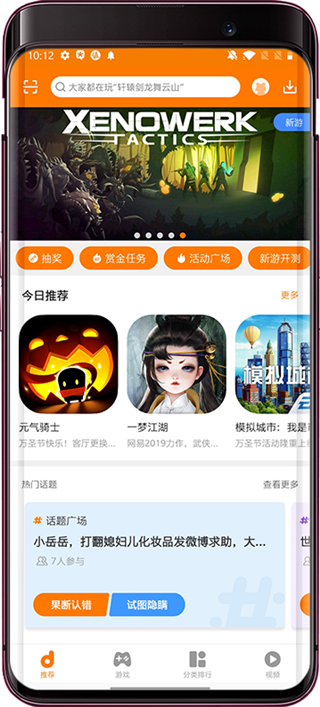 1、打開進(jìn)入軟件首頁(yè),有為各位玩家推薦的游戲;