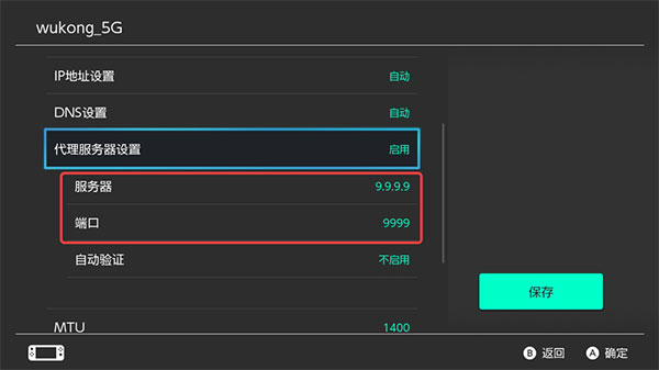 3、將“代理服務(wù)器設(shè)置”切換為“啟用”狀態(tài),并依照加速器中的網(wǎng)絡(luò)設(shè)置頁面的提示信息,將“服務(wù)器”、“端口”信息進(jìn)行設(shè)置