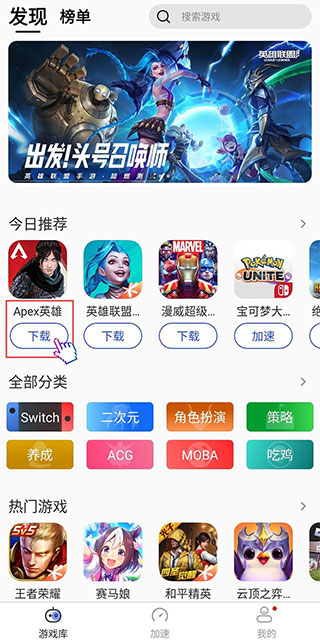 進(jìn)入游幫幫加速器,在【游戲庫】首頁或搜索“Apex英雄”即可找到,點擊“下載”,下載完成后點擊安裝。如果你之前安裝了A測的游戲包,需要卸載后重新在游幫幫中下載安裝。