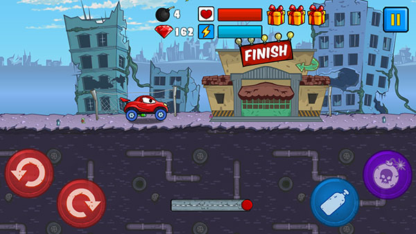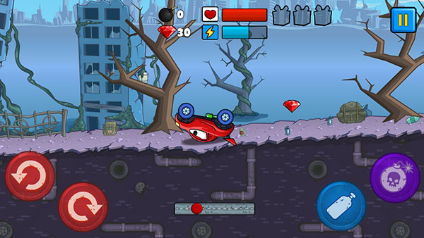 2、汽車速度過快會導(dǎo)致翻車,此時點擊左下角紅色按鈕來恢復(fù)正常行駛狀態(tài)。