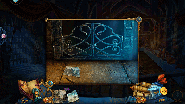 3、向下看,小圓桌上就可以找到窗戶把手和提燈把手等,這里還有一個(gè)拼圖機(jī)關(guān),缺了蝸牛和鳥雕像。