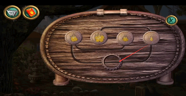 9、提燈這里找到:蝸牛雕像和龍盤,裝上提燈把手后,轉(zhuǎn)動(dòng)提燈的四個(gè)面,得到:土根。