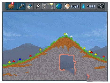 直接點(diǎn)擊五號(hào)鈕,打開天氣(weather)選項(xiàng),等水分蒸發(fā),一段時(shí)間后水蒸氣匯聚成云,掛在紫色的點(diǎn)上,雨持續(xù)落下,關(guān)卡完成。