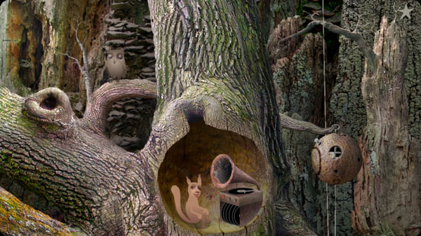 2、點(diǎn)擊樹上的洞,里面的袋鼠開始聽音樂。