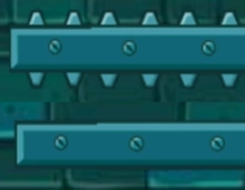 同色、同圖案的開關(guān)打開時擋板會觸發(fā)某些事件,有旋轉(zhuǎn)式和移動式。有些擋板不需要開關(guān),自動運行。無尖齒軌道中的擋板表示停止控制時會歸位。