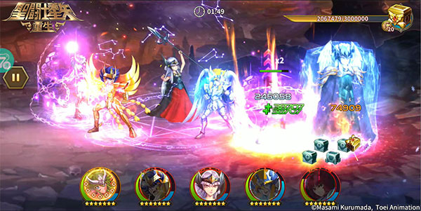 當(dāng)神圣鳳凰座·一輝的幻魔拳效果快要消失的時(shí)候,可以看見神圣天鵝座·冰河的必殺、仙女座·瞬的必殺、山貓座·賈歐的必殺三個(gè)必殺同時(shí)好了,我在這里的順序是仙女座·瞬、山貓座·賈歐、神圣天鵝座·冰河依次釋放。各位,考驗(yàn)手速的時(shí)候到了,這里如果銜接不好,將功虧一簣。那么,山貓座·賈歐就順利的進(jìn)入到8層疊加狀態(tài)。