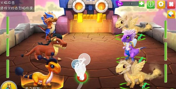 3、戰(zhàn)斗期間,把元素滑到龍身上不要立即放開,可以查看對敵方龍傷害的紅色血條,合理選擇元素用在合理的龍身上,可以減少自己龍受到的傷害。