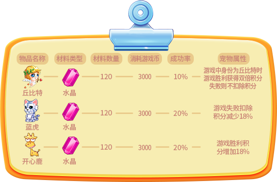 備注:通過(guò)“魔法石碎片”合成的“寵物”將在每次限時(shí)活動(dòng)中,展示其在合成時(shí)所需碎片、游戲幣數(shù)量及成功率,敬請(qǐng)關(guān)注!