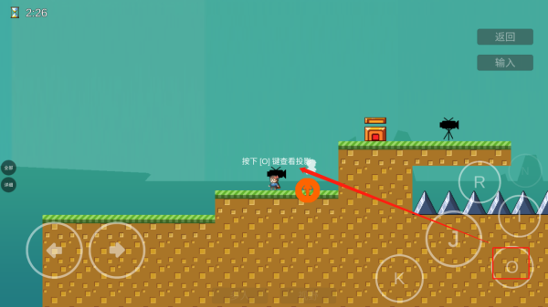 4、點(diǎn)擊J可進(jìn)行跳躍,長(zhǎng)按可以跳的更高,點(diǎn)擊o可查看投影,也可以在“門”的位置點(diǎn)擊進(jìn)行記錄重生點(diǎn)