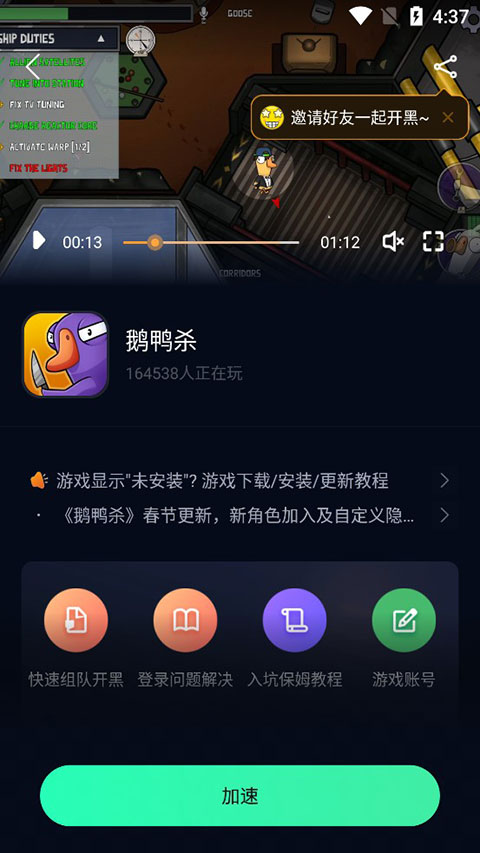 1、先打開軟件,在游戲庫中,找到鵝鴨殺。