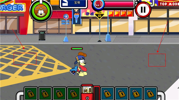 1、進入游戲之后玩家們要選擇關卡,選擇戰(zhàn)友,選擇技能,選擇寶物。逐一選擇好之后點擊開始游戲。點擊屏幕左右控制加菲貓前進和后退。
