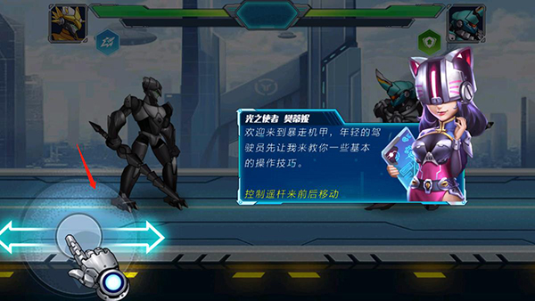 游戲操作簡單,下面就給大家?guī)硪恍┗镜牟僮骷记桑?br /> 1、玩家需要控制搖桿來幫助機(jī)甲前來移動;