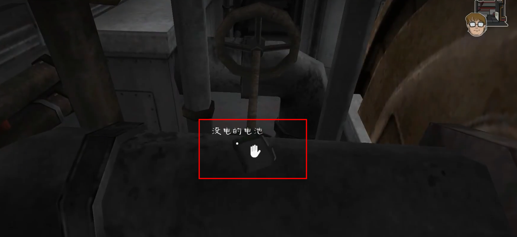 1、從房間出來(lái),靠右邊走到底,找到?jīng)]電的電池