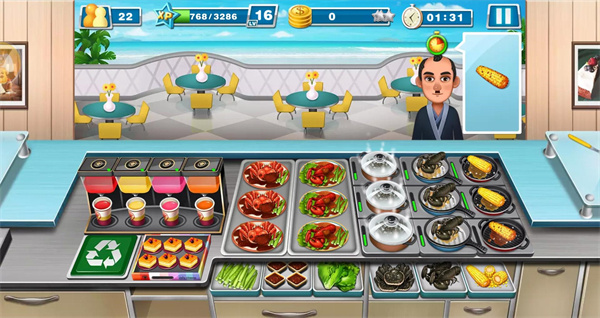 2、精心設(shè)計(jì)12個(gè)餐廳,升級(jí)裝潢由你做主,對(duì)了,別忘了升級(jí)你的餐廳還有烹飪?cè)O(shè)備哦,操作簡(jiǎn)單,畫(huà)面流暢。