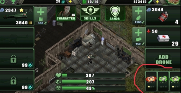 3、游戲劇情第二關(guān)完成后,會彈出一個界面,問你是不是喜歡這款游戲,點右邊喜歡,會跳到商店,不用評論,直接回到游戲,給一個藍(lán)箱子獎勵。這個箱子沒有保底,可能出兩把爛武器,也可能出超好武器,就看你臉黑不黑這個箱子出的武器可以讓玩家順利升9級,基本不帶肝的如果第二關(guān)獎勵特別差,還不如刪游戲重裝人物界面右下有三個芯片槽,我的配置是一紅二綠。芯片紅色加血量,綠色加攻擊,藍(lán)色加奔跑速度血量沒必要加太高,400差不多足夠了,醫(yī)療包反正多的用不了。就算堆到1200血,打不動怪照樣嗝屁藍(lán)色加奔跑速度就不說了,喜歡的可以留一個給男的用,他走路慢最關(guān)鍵是綠色,直接加攻擊力和暴擊??梢宰屛淦鞴舴?,并且?guī)缀趺恳幌露汲霰羧宋镒罡呱?0級,也就是說,技能點只有30,怎么分配很重要首先第一個必加技能,綠色芯片,進一步堆高攻擊與暴擊。