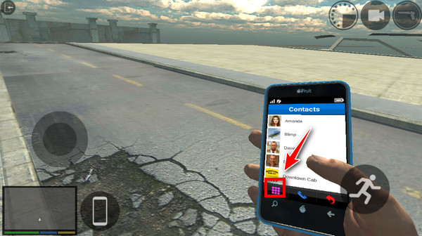 1、雙擊打開洛杉磯犯罪游戲,點擊屏幕左下角地圖旁邊的手機圖標,調(diào)出手機菜單;