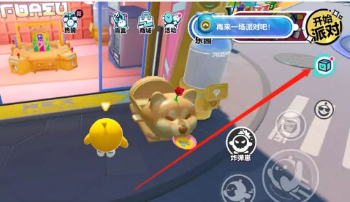 1、首先我們打開進入蛋仔派對的游戲界面,點擊箭頭所示的按鈕;