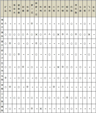 6、把「烏賊」和「紫蘇」,「鰻魚」和「黃瓜」組合起來吧。