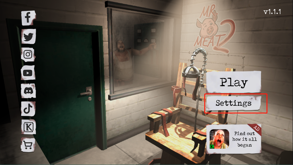 1、進入肉先生2游戲主界面,點擊【settings】設(shè)置