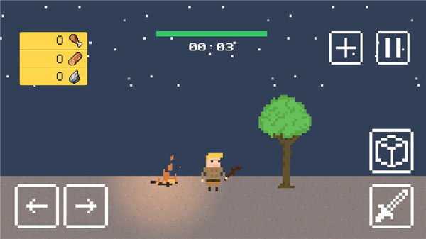 1、首先進(jìn)入游戲,可以看到肉類、木材還有石頭都是0;