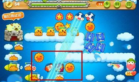 2、打掉太陽(yáng)旁邊的道具獲得2個(gè)炸彈星和2只玩具飛機(jī),此時(shí)前期就基本沒(méi)什么壓力。