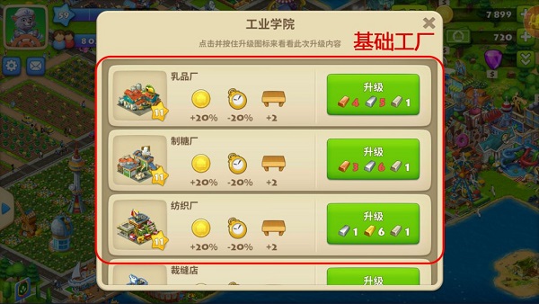 基礎(chǔ)工廠生產(chǎn)的物品除了可以作為成品銷售外,還可以作為成品工廠的生產(chǎn)原料,因此想要提高小鎮(zhèn)工廠的整體生產(chǎn)速度,就必須提高基礎(chǔ)工廠的等級,越高越好。