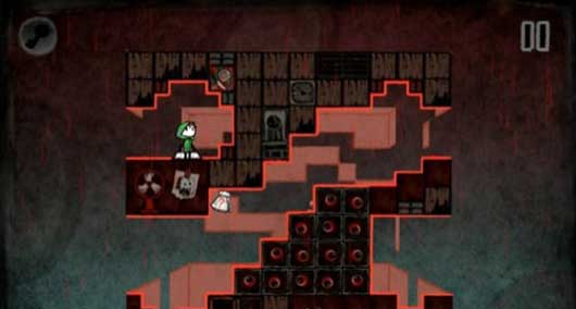 6.第三個場景踩下按鈕以后從左邊跳下來,落到左上的平臺上,然后沿路前進進入門內(nèi)解開順利過關。