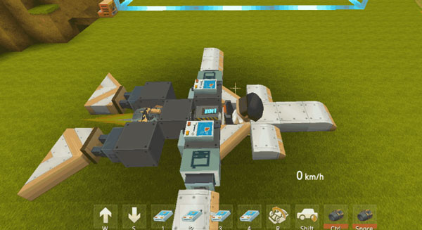 14、這樣一個(gè)簡(jiǎn)易的飛機(jī)就制作完畢啦!生成載具后嘗試一下,首先坐上飛機(jī),按下推進(jìn)按鍵: