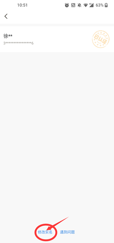 3、然后便會(huì)出現(xiàn)你的實(shí)名認(rèn)證情況,點(diǎn)擊下方的“修改實(shí)名”。