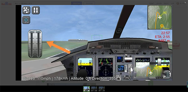 玩家將鼠標(biāo)點(diǎn)擊中間的儀表,向上垂直移動讓中間的數(shù)值為負(fù)數(shù),這時飛機(jī)向下飛行。