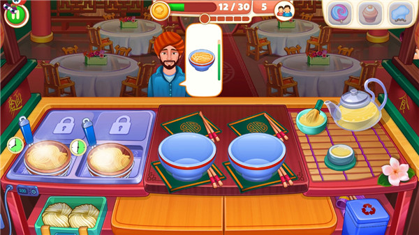 2、進入游戲之后就可以開始給我們的顧客制作美食了。