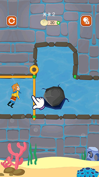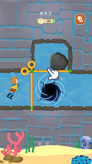 3、第二關(guān)需要先拉開(kāi)橫向的拉桿,讓石塊落下來(lái)堵住洞口。