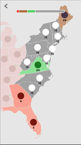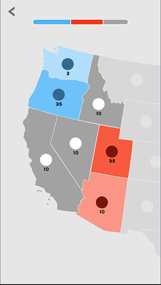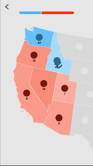3、點(diǎn)擊拖動(dòng)地圖塊中間的圓點(diǎn),即可表示派遣單位進(jìn)行攻擊擴(kuò)張,圓點(diǎn)旁邊的數(shù)字表示單位數(shù)量,單位數(shù)量會(huì)隨著時(shí)間自動(dòng)增長(zhǎng),數(shù)量越多,地圖塊的顏色也就越深。