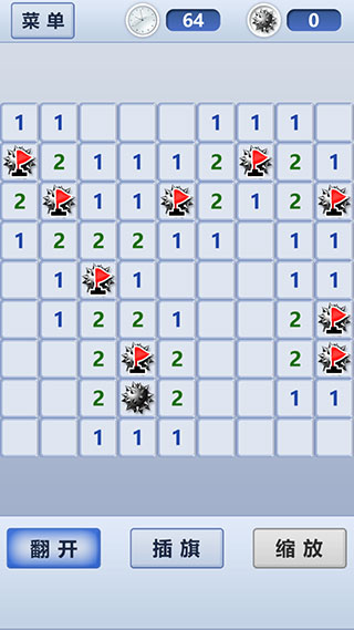 1、標記:如果某個方塊可能藏有地雷,可以切換到插旗狀態(tài)。