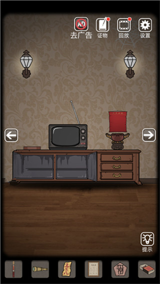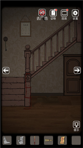 6、接著玩家來到電視機(jī)場(chǎng)景,打開第一個(gè)柜子可以獲得帶血的到,玩家回到樓梯,使用刀劃開繩子,將符紙拿起,再將大廳的燈打開,拿到雞尾酒的配方